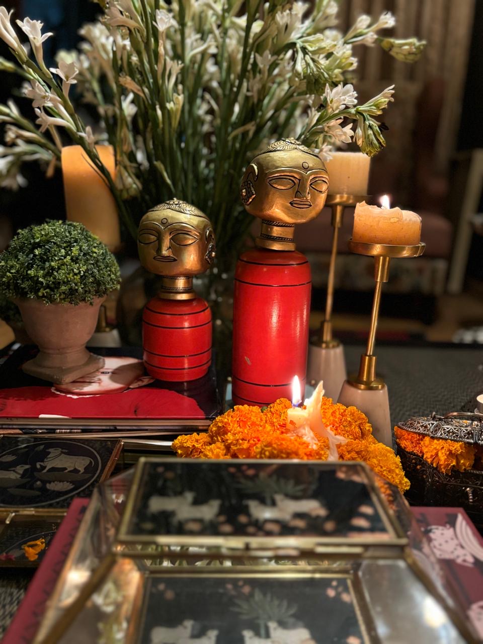 Gauri head: refers to depictions of the Hindu goddess Gauri, representing her as the consort of Lord Shiva and the mother of Ganesha, symbolizing love, fertility and marital bliss.
