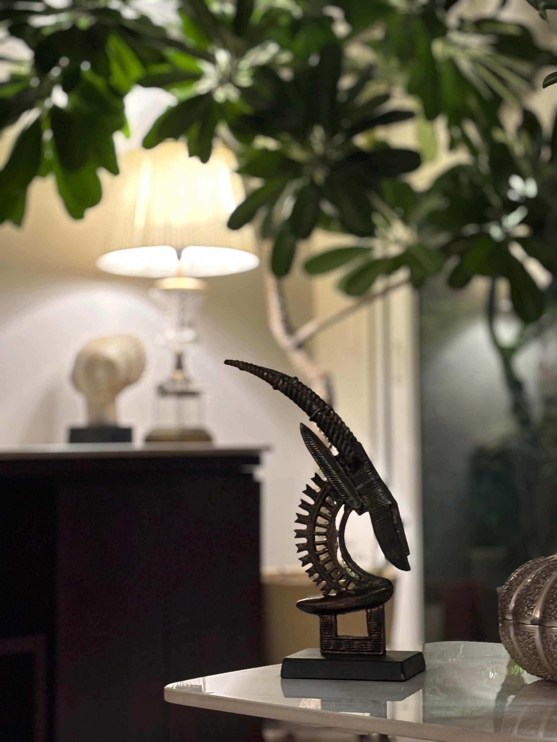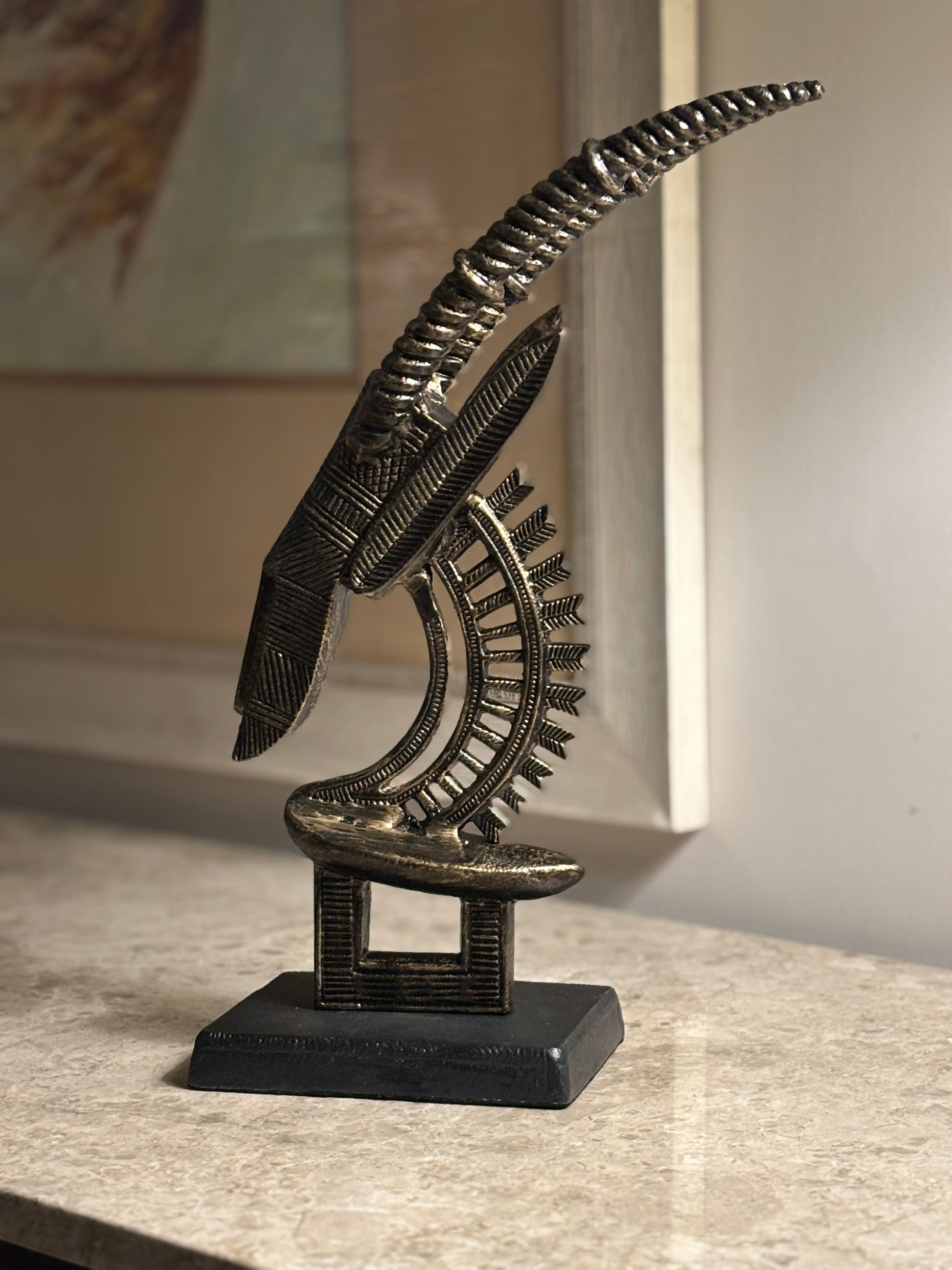 The Aztlan Figure traces its myth to the lost homeland of the Aztecs, a place between dream and memory. The gazelle stands poised, its form lean and timeless, a relic of forgotten grasslands and golden dusk.