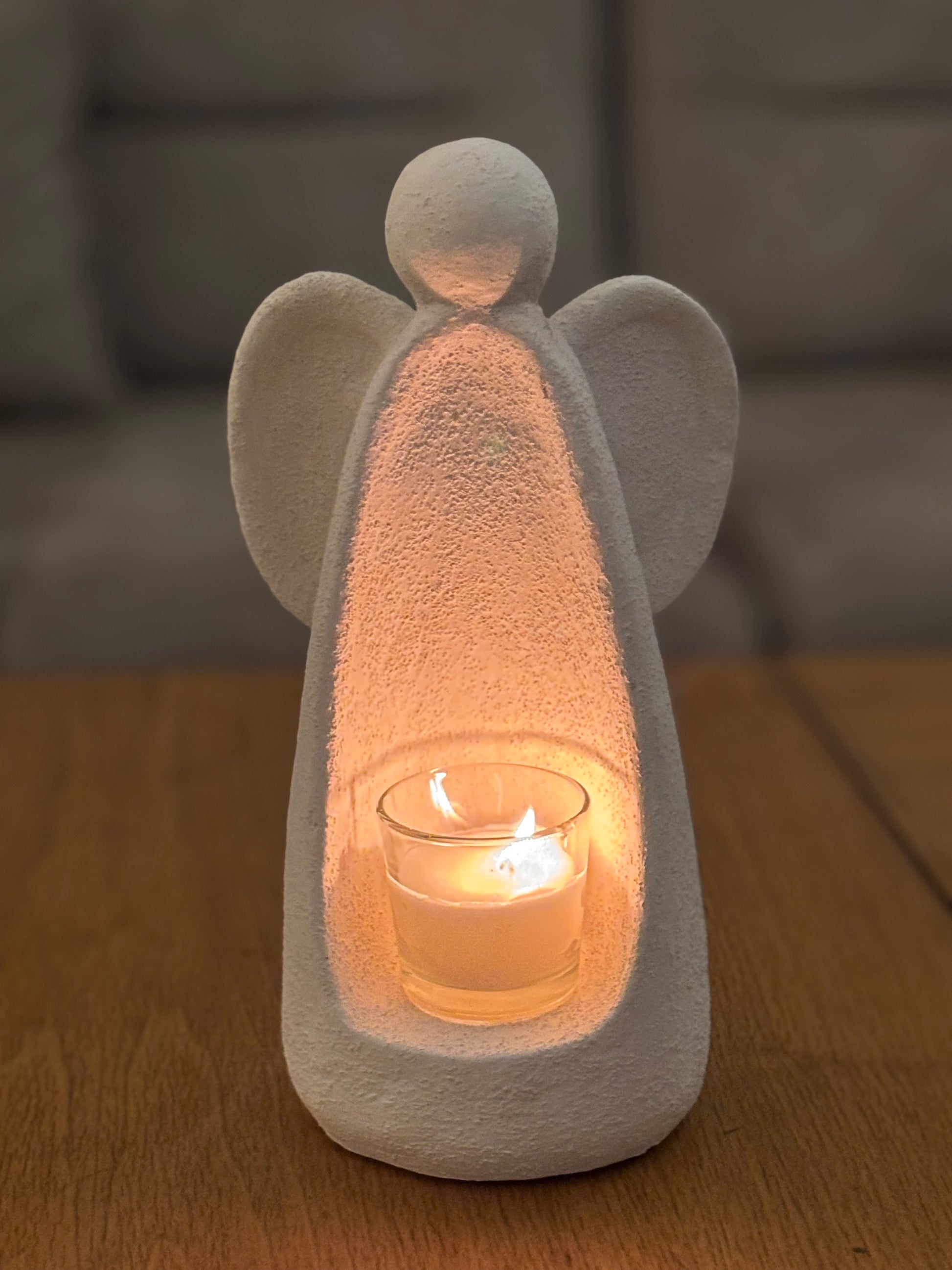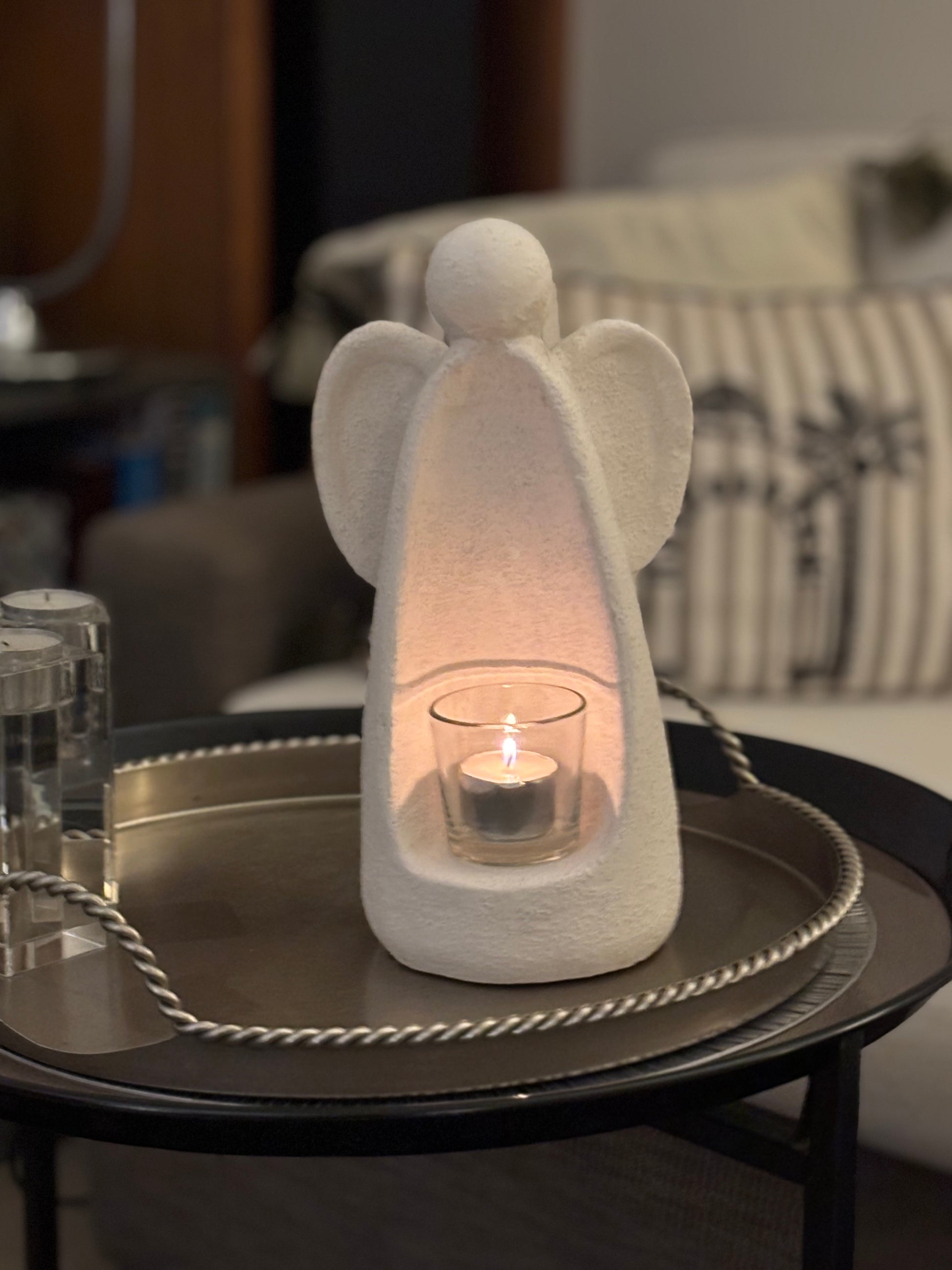 Crafted in hand-moulded terracotta, the Halo Candle Sculpture blends art and ambiance in a single fluid form. Its large sculptural silhouette, 10 inches tall, inspired by the poise of a guardian figure, creates a soft cocoon for candlelight, casting calm shadows and a quiet glow.