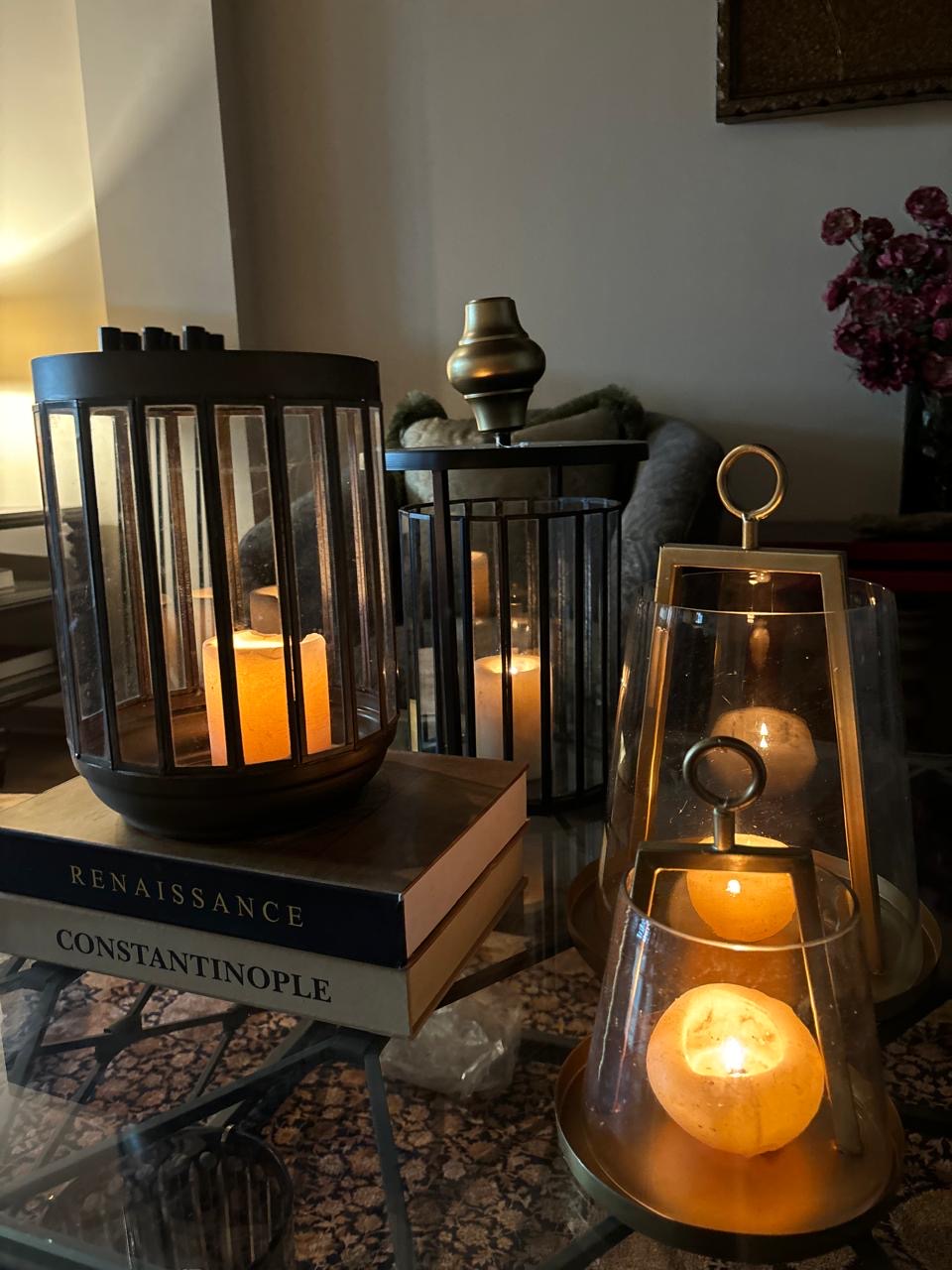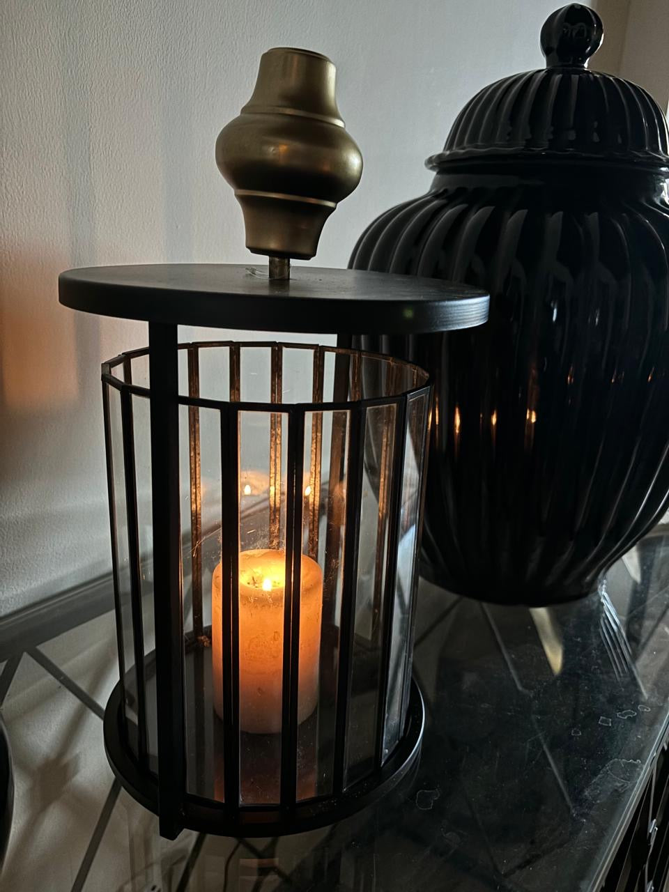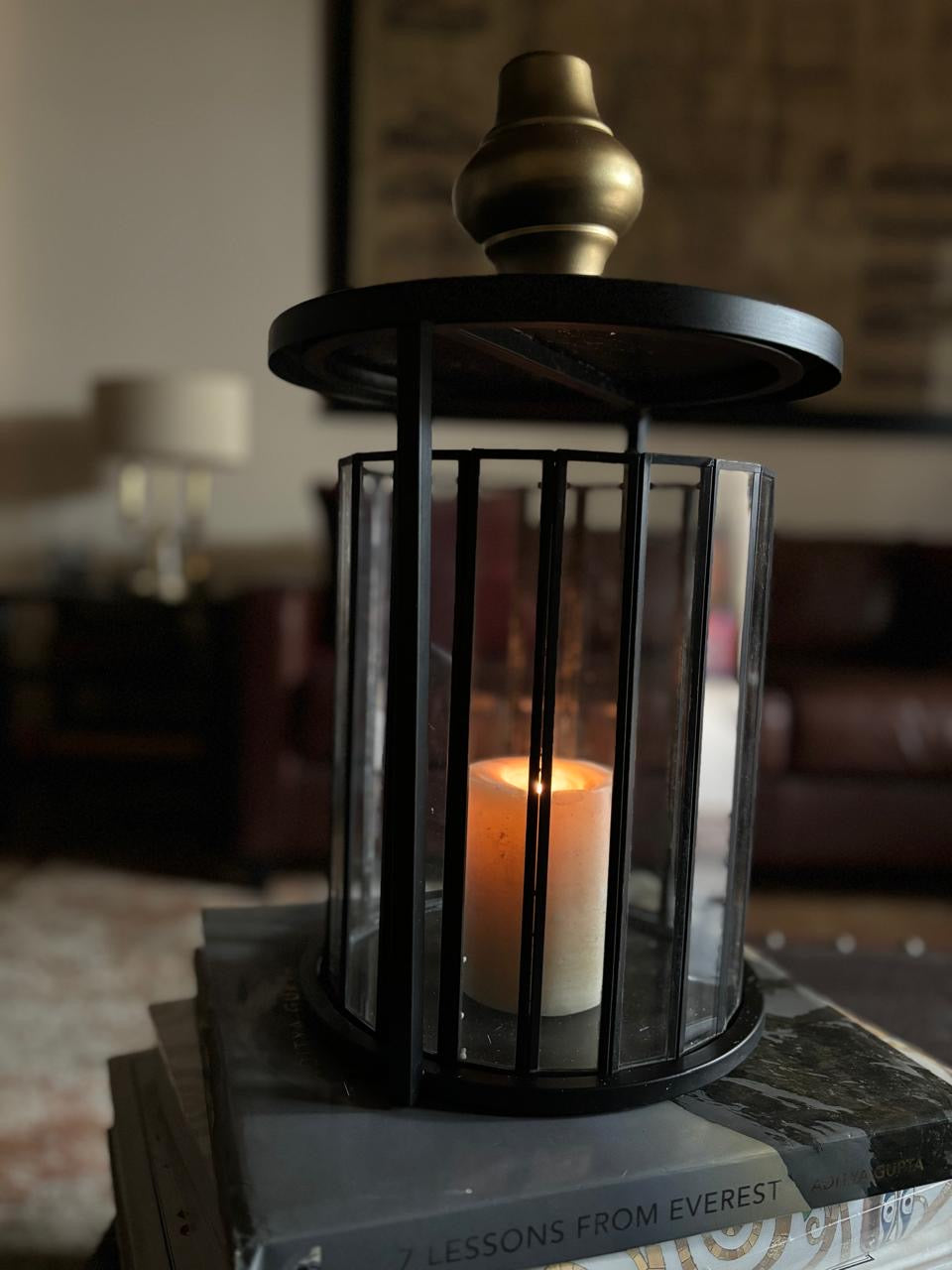 Made to house a pillar candle or stand alone as sculptural decor with vertical bars that add texture and dimensions. Rich and stylish to place on side tables, consoles and festive displays.