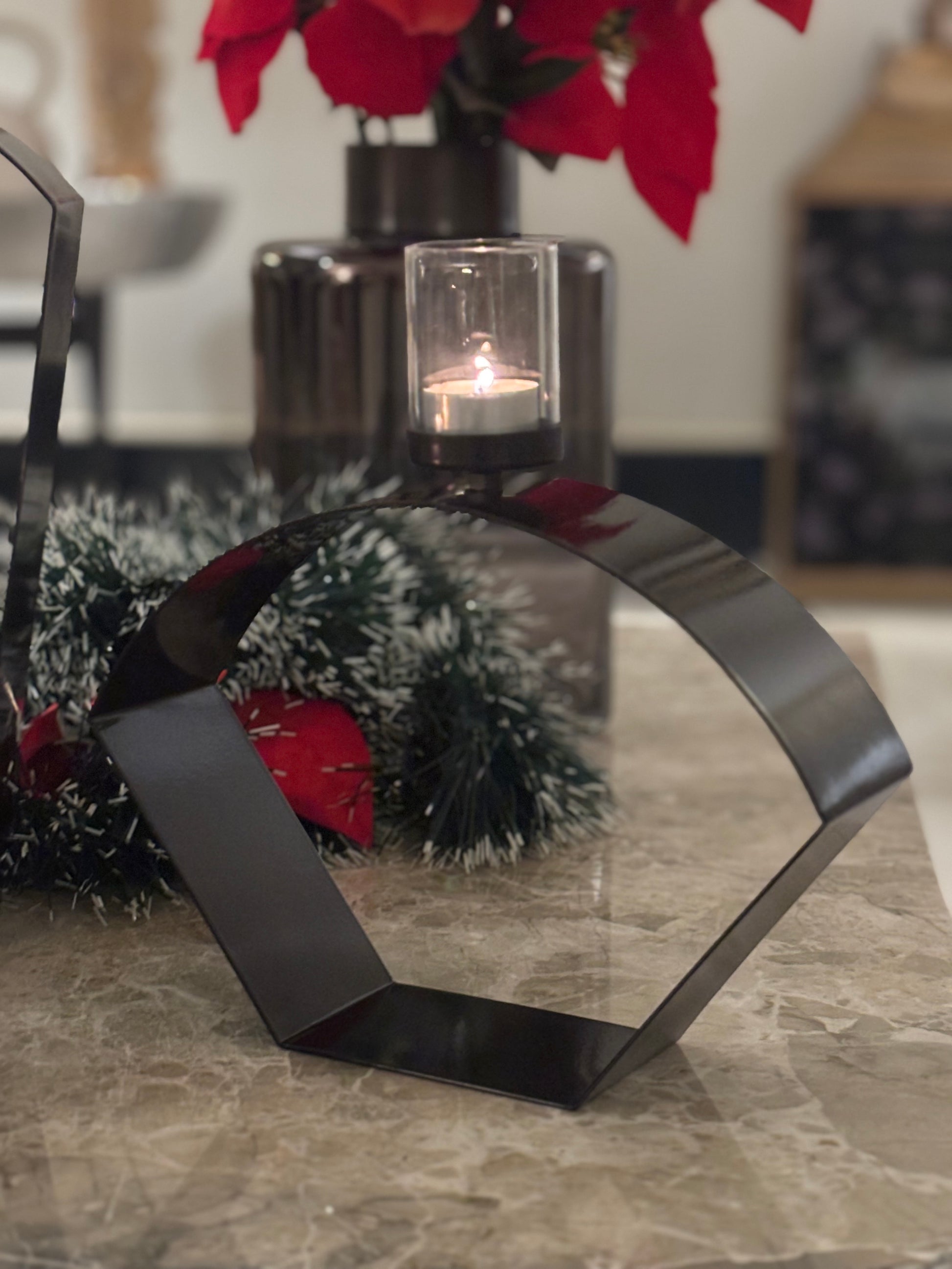 Low and grounded, The Rest gathers light close to the surface — intimate, reflective, and calm. It completes the ensemble in stillness, bringing balance to the arc of motion. This candle holder features a minimalist geometric frame forming an arch with modern angular sides. A plate to rest the candle, crowns the top.